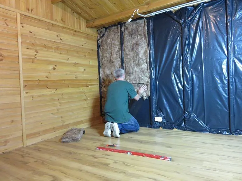 Для того чтобы дерево не испортилось от скапливающегося конденсата, перед укладкой утеплителя его следует закрыть пароизоляционной пленкой. Пароизоляция особенно важна при утеплении внутренних стен минватой или пенопластом.