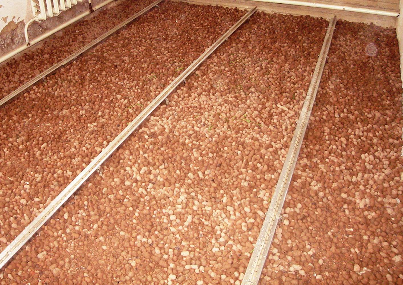 - После полного застывания состава засыпается керамзит, слоем не меньше 10 сантиметров.