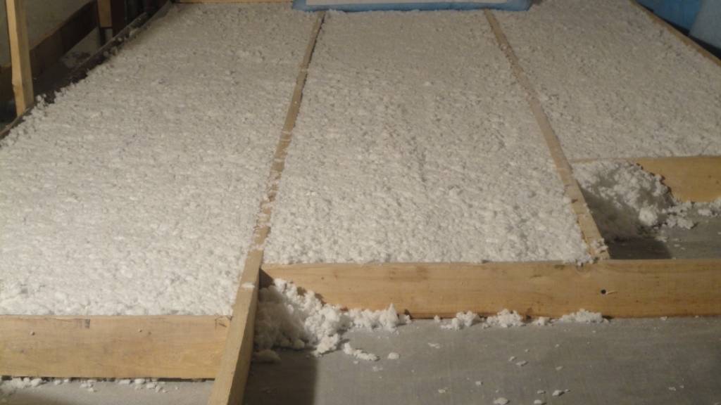 При утеплении перекрытия сверху используются также различные сыпучие вещества.