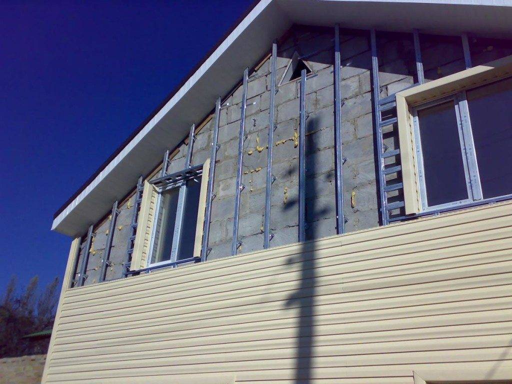 Самое сложное в работе – выстроить каркас с точной выверкой поверхности фасада. Если сделать что-то не так, проявятся неровности. Преимущество способа в разнообразии вариантов облицовки газосиликатных стен, а также в возможности осуществлять утепление газосиликатных стен при отрицательных температурах (до -7 градусов).