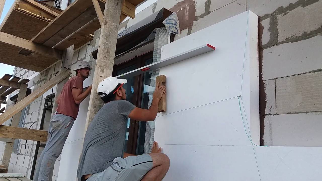 Этот материал поставляют в плитах стандартного размера. Если несущая стена сделана качественно из «автоклавных» пеноблоков, дополнительное выравнивание не требуется.