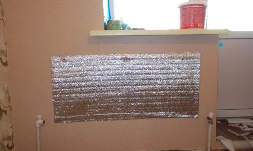 Отражающий экран из фольги — эффективный способ теплоизоляции в местах нахождения батарей отопления.