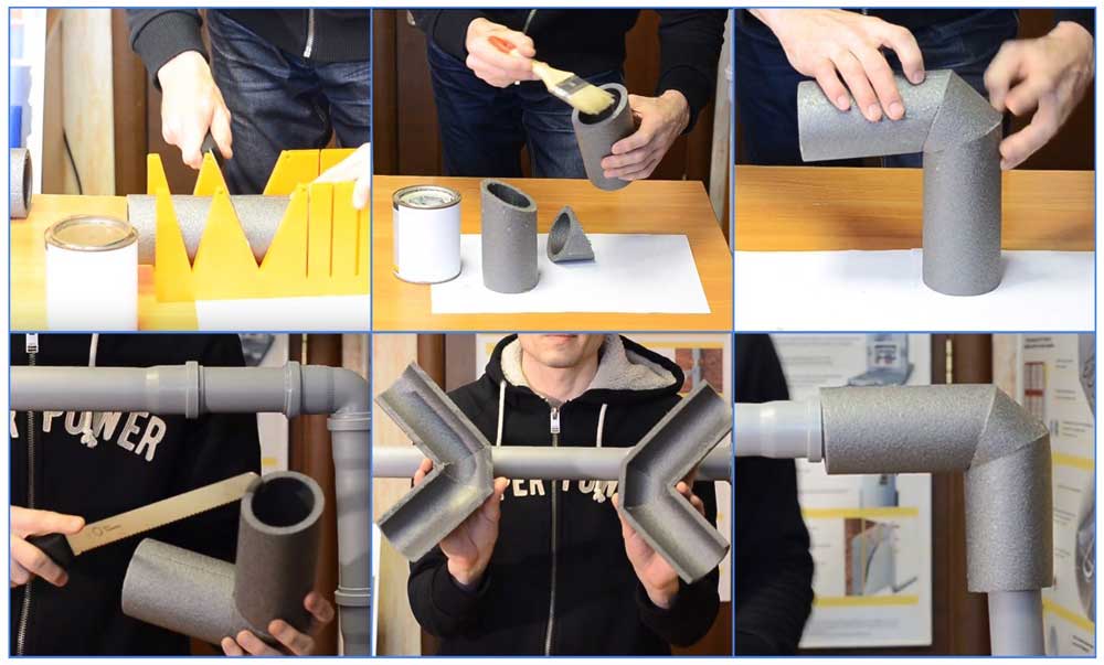 Схож по своим свойствам с пенопластом, отличается лишь тем, что выпускается в жидком виде. При нанесении на трубы не оставляет «пробелов» и обеспечивает после высыхания герметичность системы.