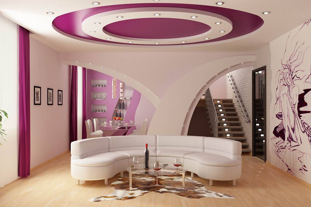 В квартире все виды потолков для зала наделены особенностями, также наличествуют свои достоинства, минусы. Какие-то актуальны для этностилей, иные – идеальны для классических.