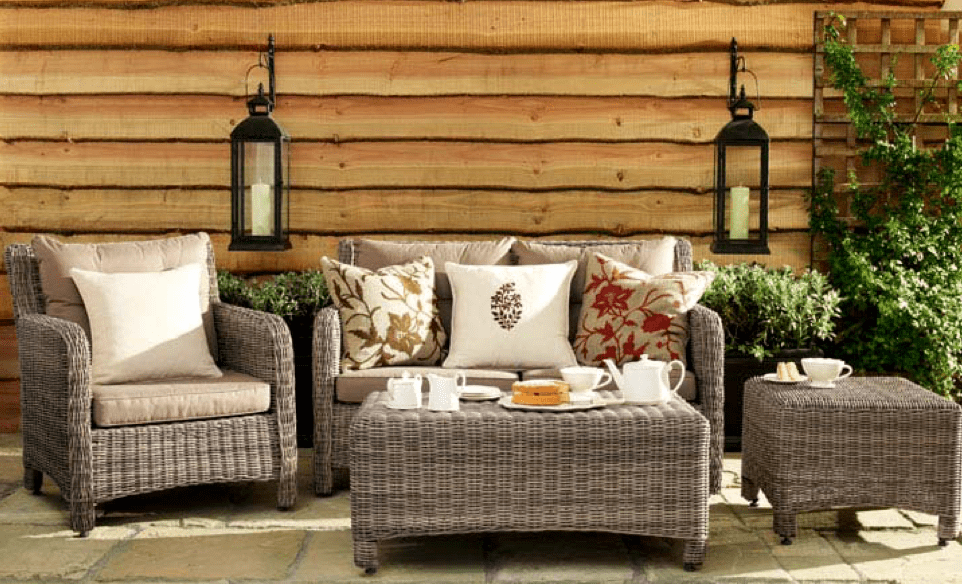 Если постройка открытая – выбирать лучше мебель исходя из того, насколько легко ее можно собрать и унести. Обычно это простая деревянная или плетеная мебель для веранды.