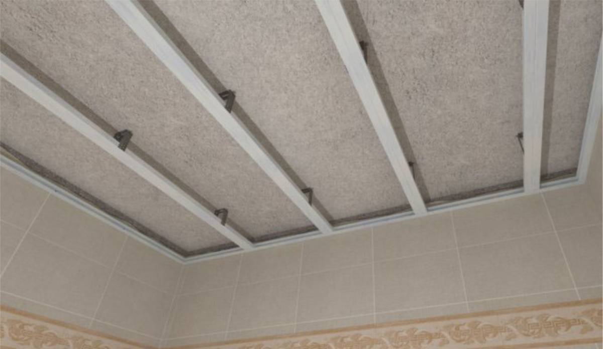 За потолком можно установить материалы для повышения тепло- и звукоизоляции помещения.