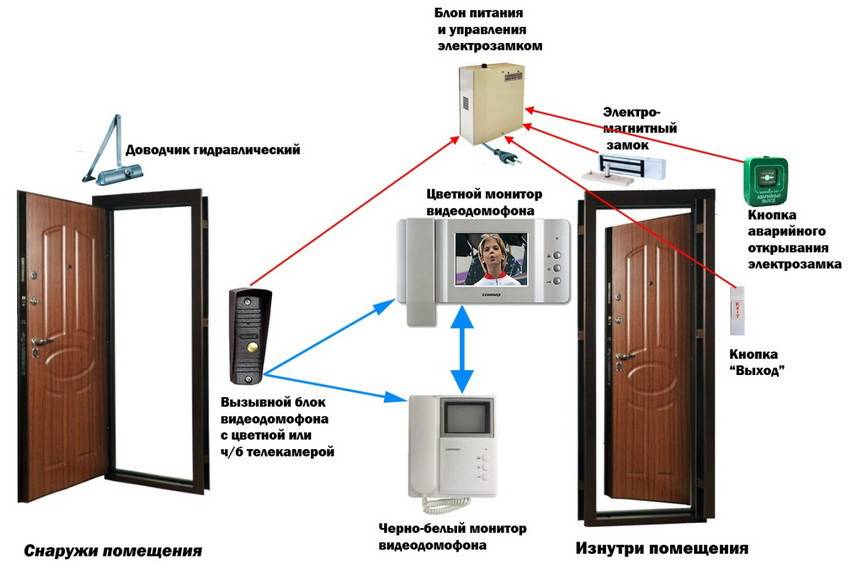 Если видеодомофон устанавливается снаружи подъезда при входе, то видеозвонок ставится внутри самого подъезда, непосредственно возле двери в квартиру.