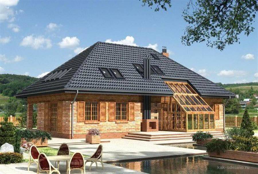 Благодаря такому нестандартному подходу жилой дом приобретает необычный, уникальный вид. Жилище с комбинированной кровлей может одновременно иметь крытые балконы, достаточное число окошек, веранды как открытые, так и закрытые.
