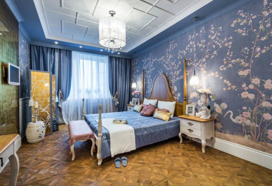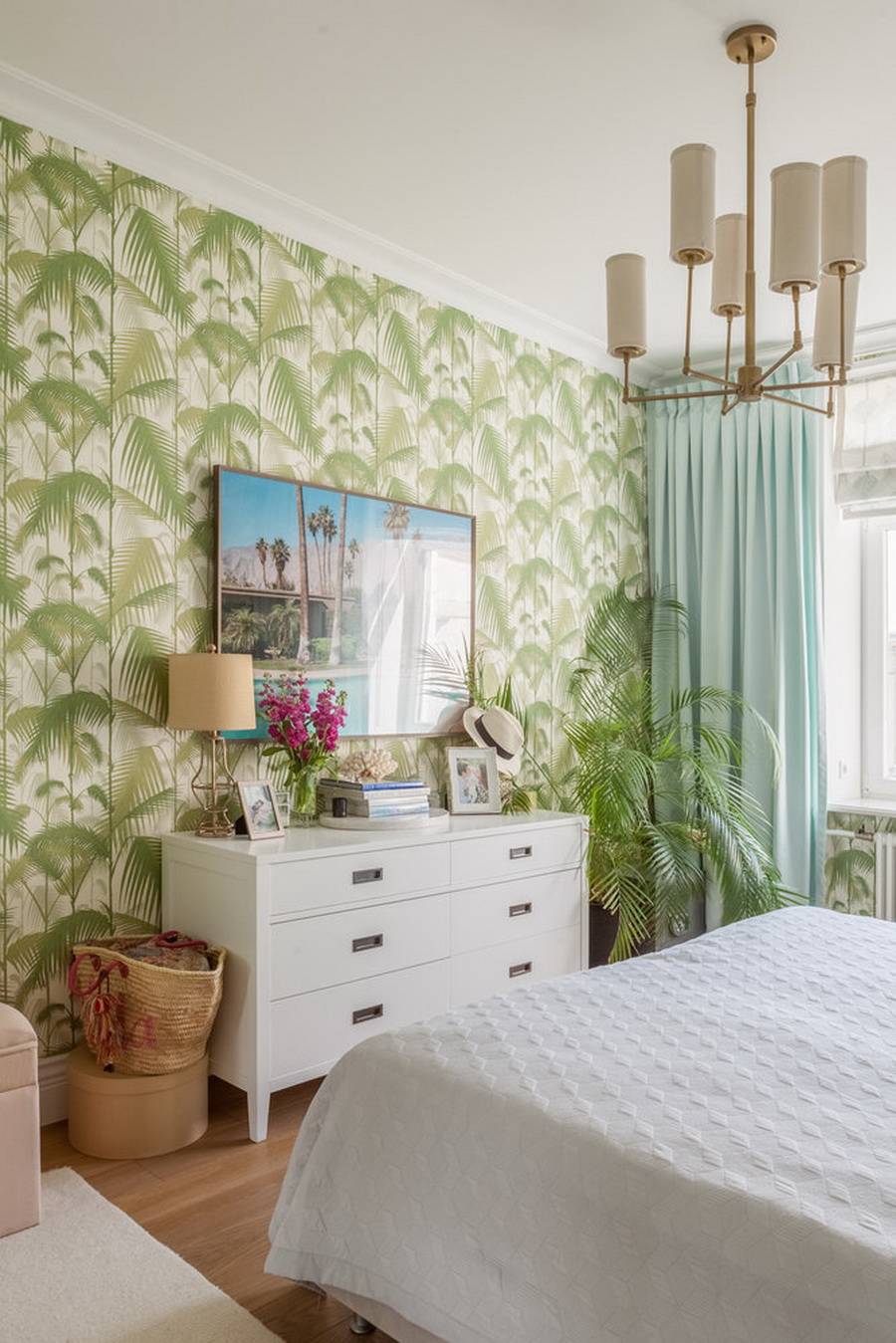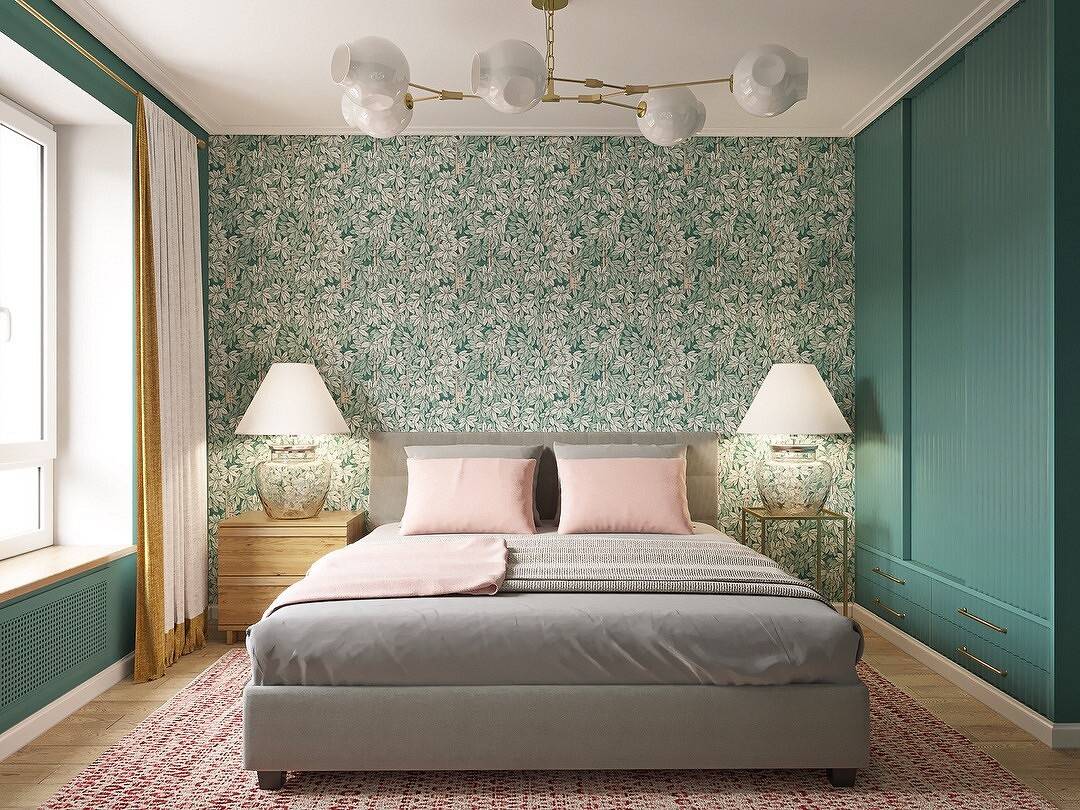 Нужно верно подобрать узор на стенах. Не нужно выбирать очень мелкий узор, он на большой плоскости стены будет выглядеть грубо и скучно. Сейчас стало модным клеить рисунок с яркими цветами, например, на одной стене.