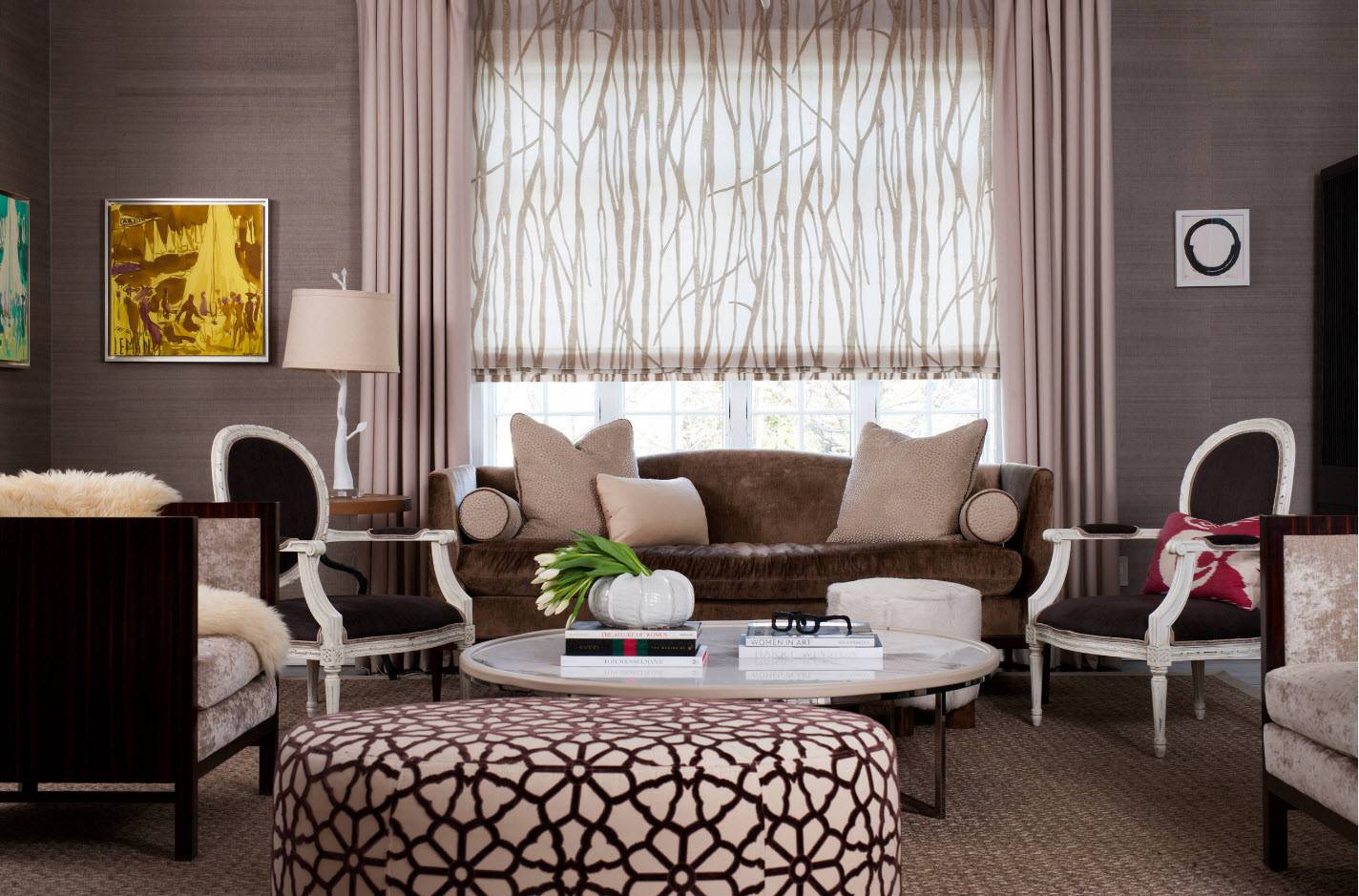 Теперь вы знаете, какие обои лучше выбрать для зала, и осталось подобрать текстильные элементы к такому оформлению стен. Давайте кратко ознакомимся с принципами подбора штор и занавесок.