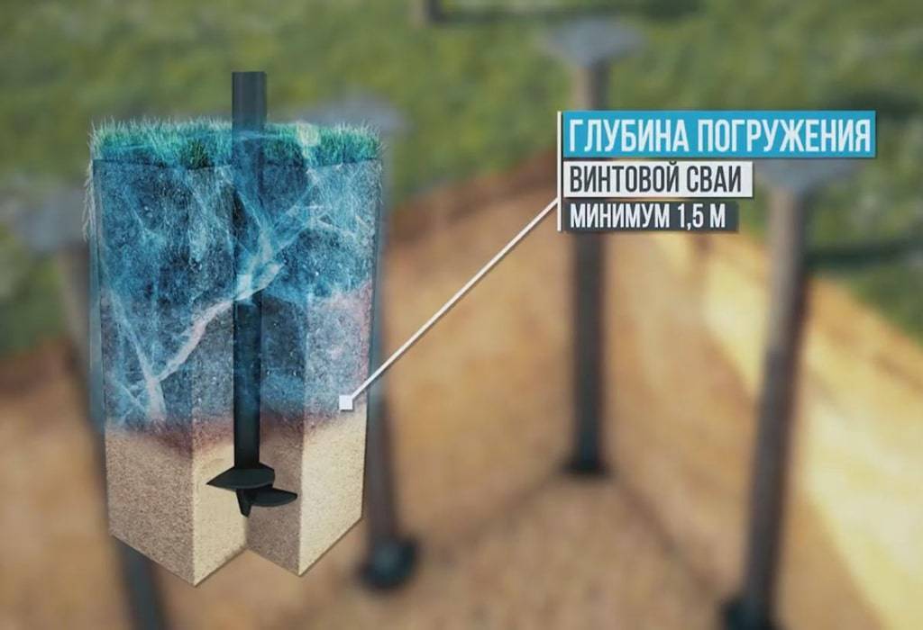 Винтовые сваи необходимо завинчивать на глубину ниже уровня промерзания грунта