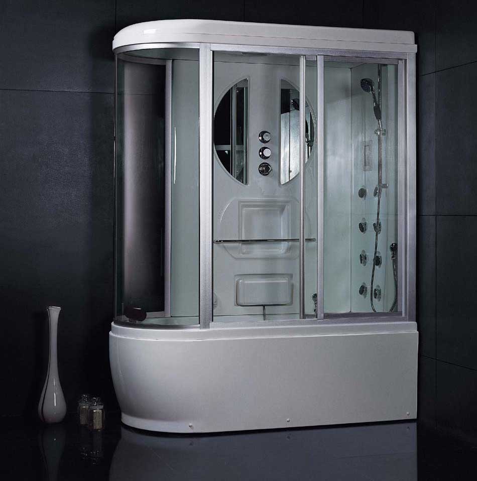 - Комбинированные модели боксового типа имеют достаточно глубокий стальной, чугунный или акриловый поддон, по периметру которого устанавливаются стенки. Потолочная часть может присутствовать или отсутствовать. В таких современных конструкциях очень удачно сочетаются достоинства традиционной ванны с гидромассажными функциями, а также преимущества кабинок с тропическим или каскадным душем.