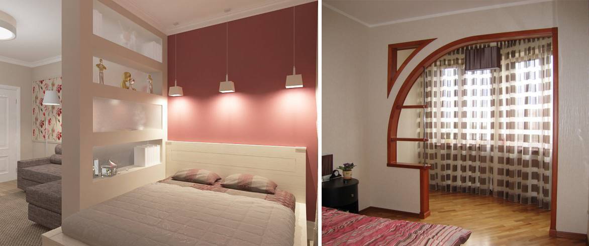 Организация пространства в гостиной или в спальне может потребовать установки дорогостоящего мебельного гарнитура. Заменить его могут гипсокартонные стеллажи, ниши или перегородки с полками. Часто встроенные в стены ниши делают с подсветкой, имитируя оконные проемы или просто создавая акцент на декоративных изделиях. Такие полки служат дополнительным источником рассеянного освещения комнаты. Ажурные перегородки помогают зонировать большую студию или совмещенную комнату.