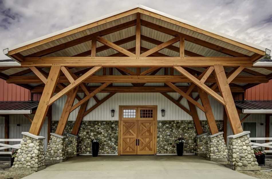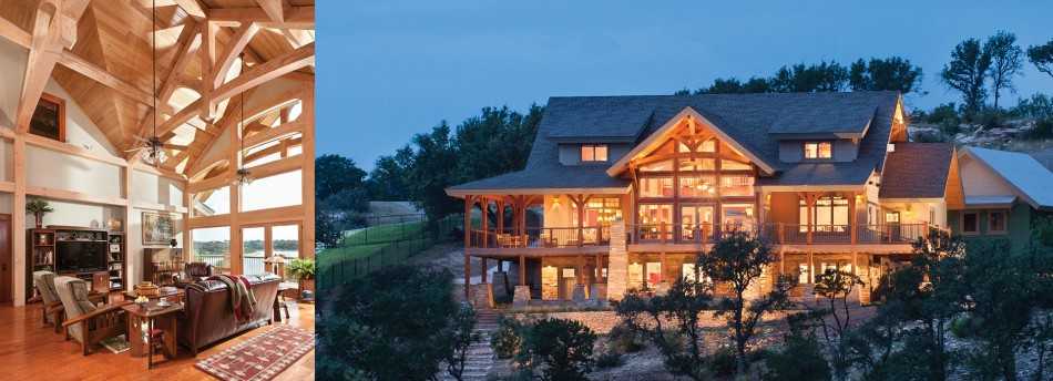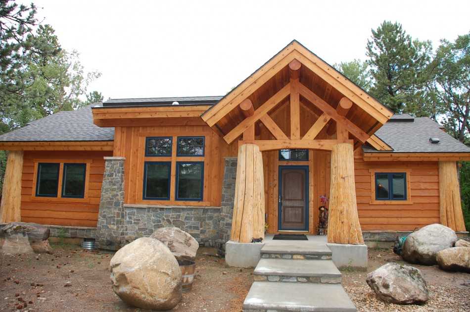 Каркас служит скелетом для деревянного дома. От него зависит, насколько прочно и долго простоит будущая конструкция. Чаще всего для элементов каркаса (деревянные балки, стойки, раскосы) используют клееный брус. Его полностью обрабатывают антисептиками и антипиренами, а после этого тщательно просушивают. С помощью специальных строительных гидроизоляционных процедур древесина надежно защищается от воздействия влаги.