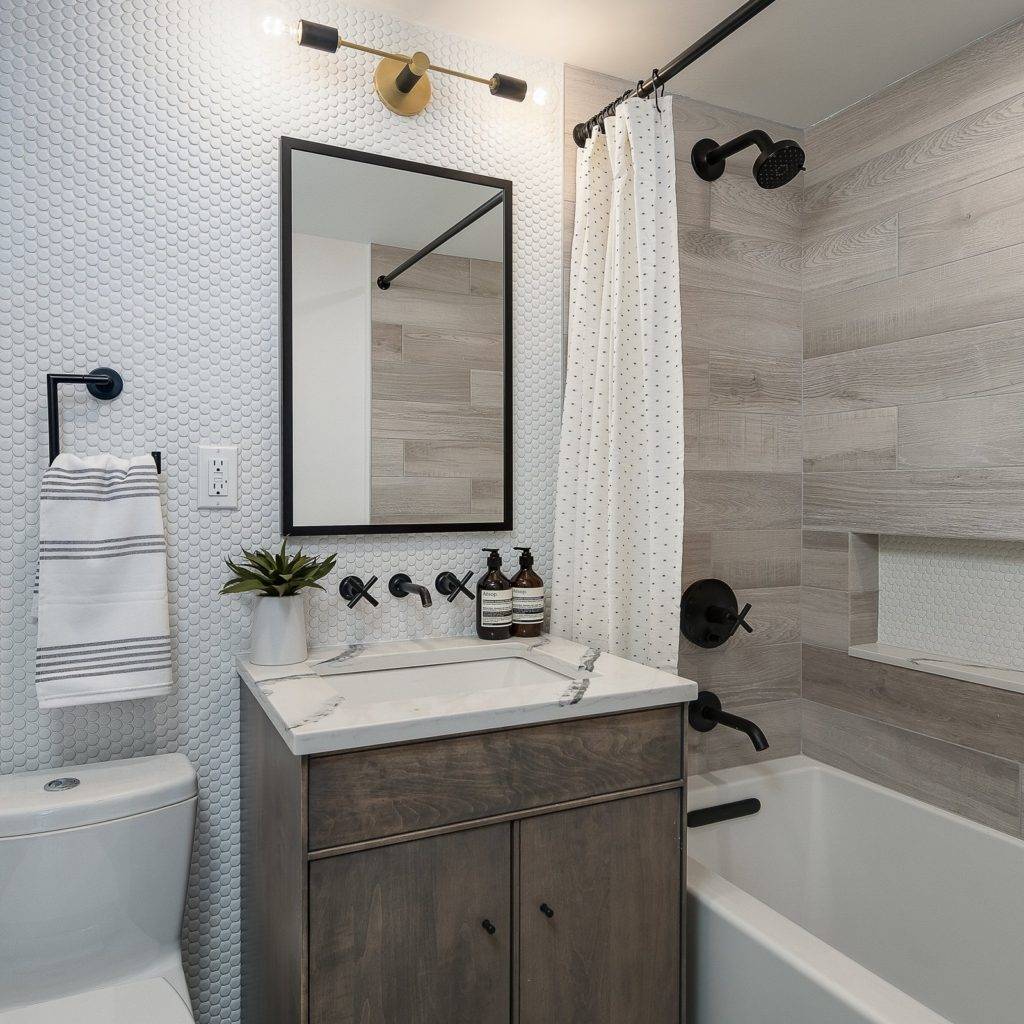 Правильный размер плитки для небольшой ванной комнаты, будь то стены или полы, окажет большое влияние на то, чтобы ваше небольшое пространство стало больше и ярче. Ванная может фактически извлечь выгоду из большой плитки. С меньшим количеством линий затирки комната визуально расширяется.
