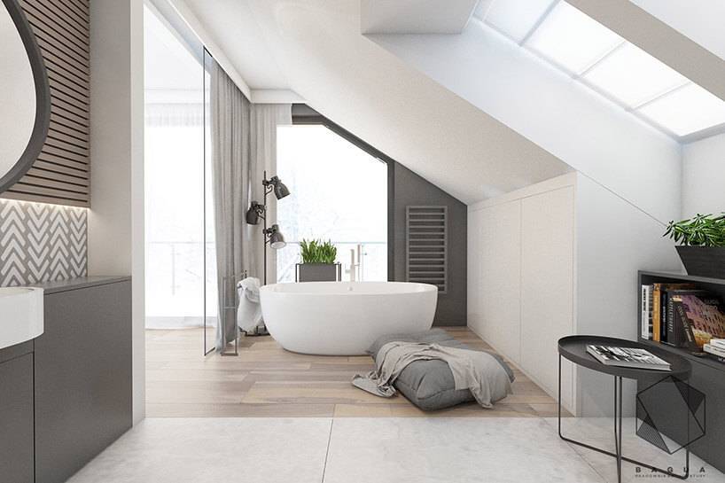 Игра ярких цветов и оттенков и правильное освещение имеет решающее значение для того, как мы будем использовать пространство ванной комнаты. Чем больше белизны, тем больше она нам кажется.