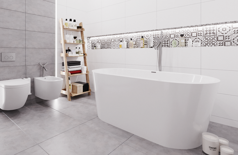 В-третьих, дополнительные источники, обеспечивающие комфортное пребывание в ванной комнате: подсветка ниш и полок.