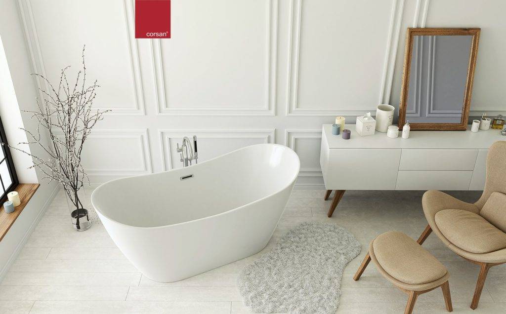 Отдельно стоящие ванны, как и другие, изготавливаются из различных материалов. Акриловая ванна в последнее время стала очень популярной. Она популярна благодаря своей довольно доступной цене, устойчивости к повреждениям и обесцвечиванию. Акрил очень хорошо изолирует.