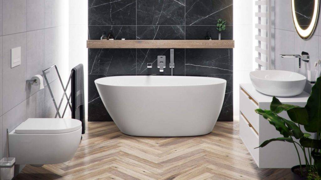 Деревянная ванна — этот тип ванны имеет дизайн, который может облагородить и украсить любую ванную комнату. Она устойчива и экологична одновременно, и ее можно найти в различных оттенках коричневого, в зависимости от ваших предпочтений.