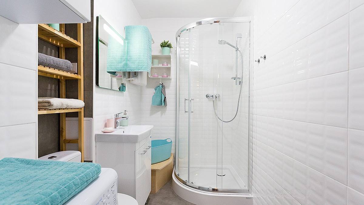 При выборе оборудования учитывайте размеры комнаты. К счастью, задача стала проще из-за производителей, которые вносят в предложение серию оборудования, идеально подходящее для всех ванных комнат. Для продажи доступны небольшие ванны, более короткие унитазы, угловые раковины и компактная мебель. Также стоит выбрать подвесное оборудование — унитаз и мебель. Подвесная сантехника выглядит компактнее, не занимает ценного места на полу, а также легче чистится. Кроме того, такая установка позволяет скрыть промывочный бочок и водопровод в стене.