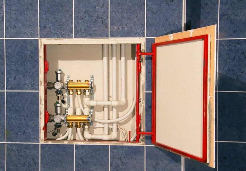 Иногда делают технические ниши больших размеров, например, если необходимо замаскировать за фальшстеной бойлер, распределитель, фильтр, счетчик, коллектор холодной и горячей воды или другое оборудование. Нередко большая ревизионная ниша требуется в туалете или совмещенном санузле для обслуживания канализации. Если найти люк подходящих размеров не удается, то можно прибегнуть к другим способам маскировки коммуникаций.
