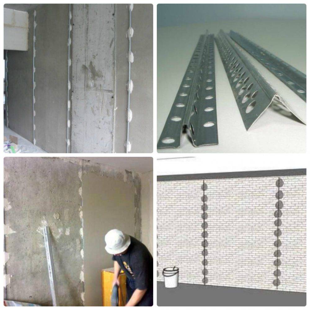 Для идеального результата рекомендуется использовать специализированные профили – усенки и лузги. Это внутренние и внешние перфорированные углы, устанавливаемые в местах сопряжения двух стен, стен и потолка. Поверх уголка наносят порции штукатурки и разравнивают ее шпателем.