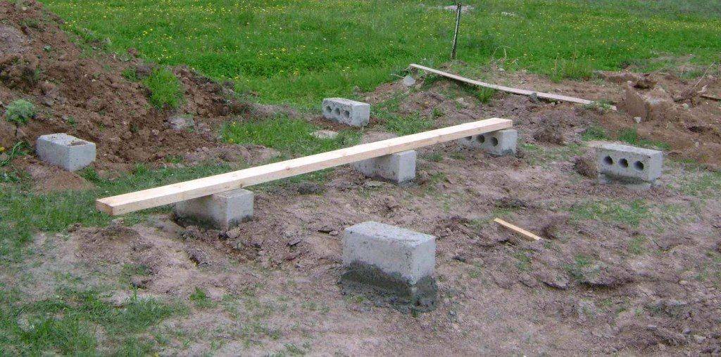 Легкие временные постройки достаточно установить на подкладки из блоков, чтобы создать воздушный зазор между землей и низом деревянной конструкции, как на этом фото: