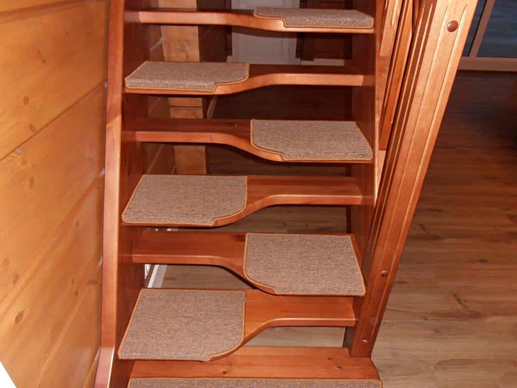 Для экономии в поворотных лестницах на второй этаж, вместо площадок между пролетами устанавливают забежные ступени. Они имеют различную форму, их ширина у оси поворота меньше ширины у наружного края. Минимальная ширина должна быть в пределах 10 см.